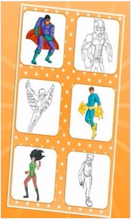 游戏收录了来自不同文化背景的超级英雄形象,每个角色均具有独特的造型特征。玩家可通过调色板自由选择色彩进行填充,并支持对已完成作品进行保存或修改。此外游戏还提供色彩清除功能,方便用户重新进行创作尝试。