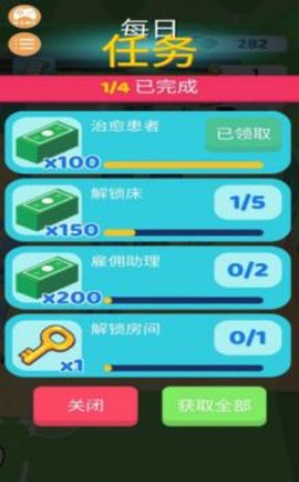 3. 还可以在游戏内招募医生和护士,帮助你分担压力。这些专业的医护人员会让你的运营更加顺利,减轻你的负担,让你更能专注于治疗病人。