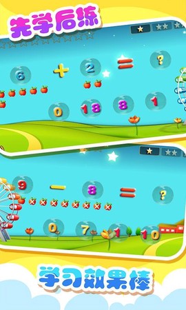 2、等到要学加法了,里面各种花式练习等着他,像玩闯关游戏一样,算得又快又准。