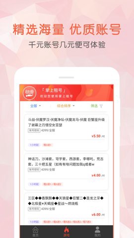 1、这个平台绝对注重用户体验,价格亲民的账号租赁服务让你能够以极低的成本享受到高质量游戏账号的乐趣,激发你的游戏激情。赶紧点击下载,加入这个精彩的游戏社区吧!