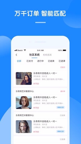 4、课程订单系统采用智能分发机制,同时对接社区个人用户与教育机构两类客群,自动匹配教师资质与学员需求。