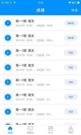 3、在成绩界面,查看你上传作业的成绩,犹如一场游戏的升级,随时了解你的学习状态。