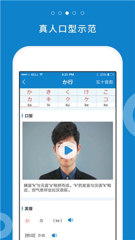 2、真人口型示范与专业发音纠正,采用科学的记忆练习法,轻松掌握五十音图入门课程,还有更多宝贵的免费课程等你来发掘。
