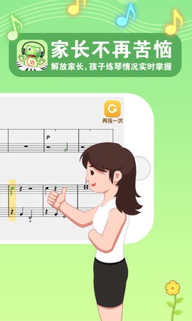 3. 练琴进步快,回课老师夸赞弹错有AI提示,提升孩子快速熟练曲谱,增强学习信心与动力。