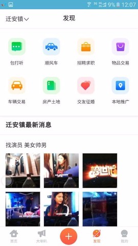 5、发现页整合包打听、顺风车、招聘求职等八大功能板块,形成综合性服务矩阵。