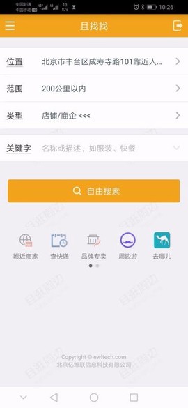 4. 店铺搜索执行:进入查找页面,设定位置、范围、类型等筛选参数后,触发自由搜索操作。