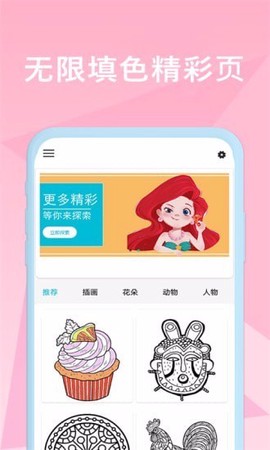 应用提供近乎无限的填色体验,并记录每次作品的完成进度,满足用户的收藏与回顾需求。